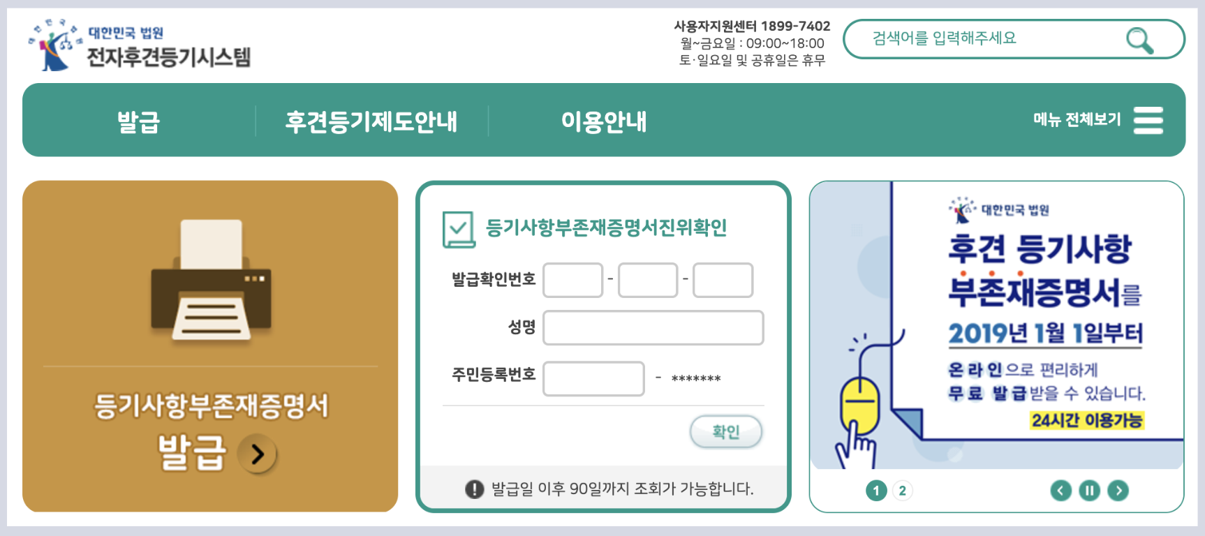 등기사항부존재증명서 발급 방법은 아래의 링크에서 확인 가능합니다.